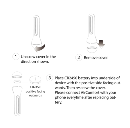 After changing the battery, you may tap on the refresh button on Sensor page or detail page. Make sure that you are close to Air Comfort device while reconnecting. Then it will display the Progress box and your device should be updated.